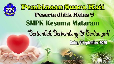 Sebagai agenda tahunan SMPK Kesuma Mataram menyelenggarakan kegiatan pembinaan kepribadian yang diberi judul Pembinaan Suara Hati ( PSH ). Kegiatan ini diagendakan untuk 2 ( dua ) jenjang yaitu kelas 7 dan kelas 9. Walaupun situasi pandemi covid-19, kegiatan ini tetap digelar dalam bentuk daring/online. Sangat terasa bedanya, dalam kegiatan PSH baik itu kelas 7 maupun kelas 9, biasan...